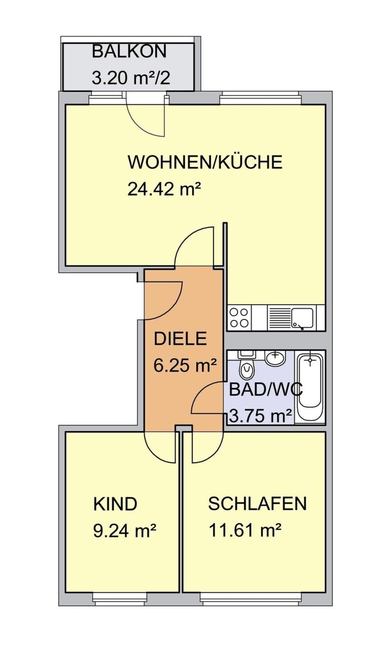 Die hier genannte 3 Raumwohnung befindet sich einem sanierten Plattenbau in der 2 Etage.